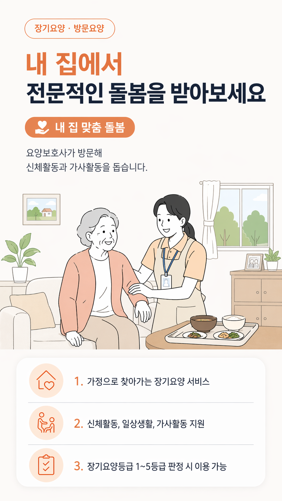 퇴원, 요양등급 등 필요한 지원을 확인하세요.